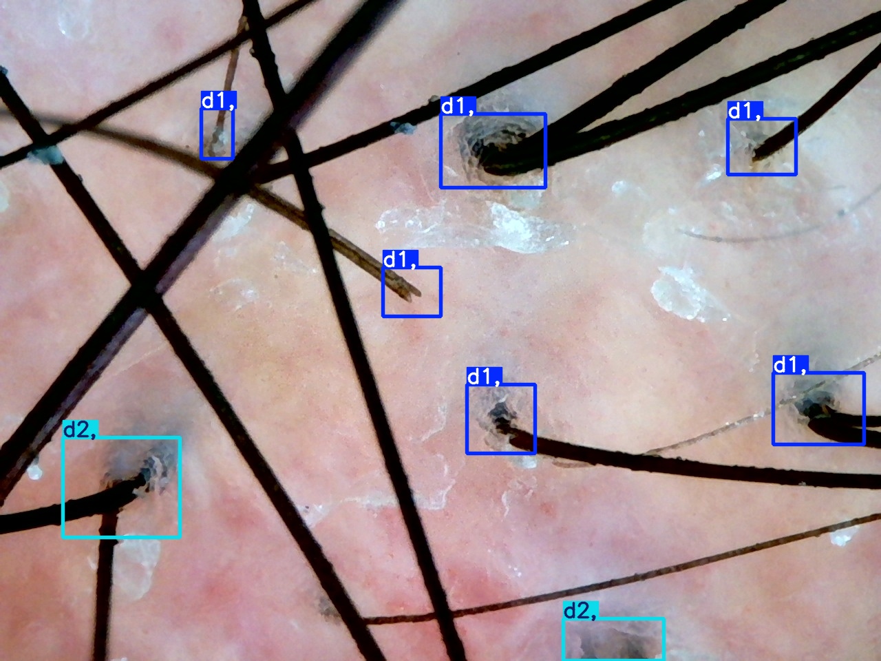 毛发镜检:皮肤科医生用设备放大观察毛囊健康。